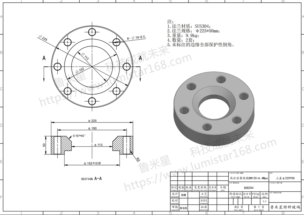 產(chǎn)品名稱:帶頸高壓容器視鏡DN125-6.4Mpa